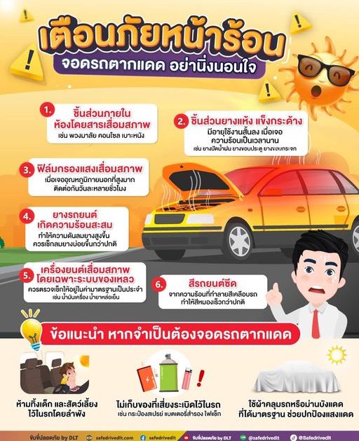 บางพื้นที่อุณหภูมิสูงสุดถึง 44 องศาเซลเซียส คงมีใครหลายคนไม่น้อยที่มีความจำเป็นและเป็นกังวล เมื่อต้อง #จอดรถตากแดด เป็นประจำทุกวัน เพราะอาจทำให้รถเกิดปัญหาเหล่านี้ตามมาได้