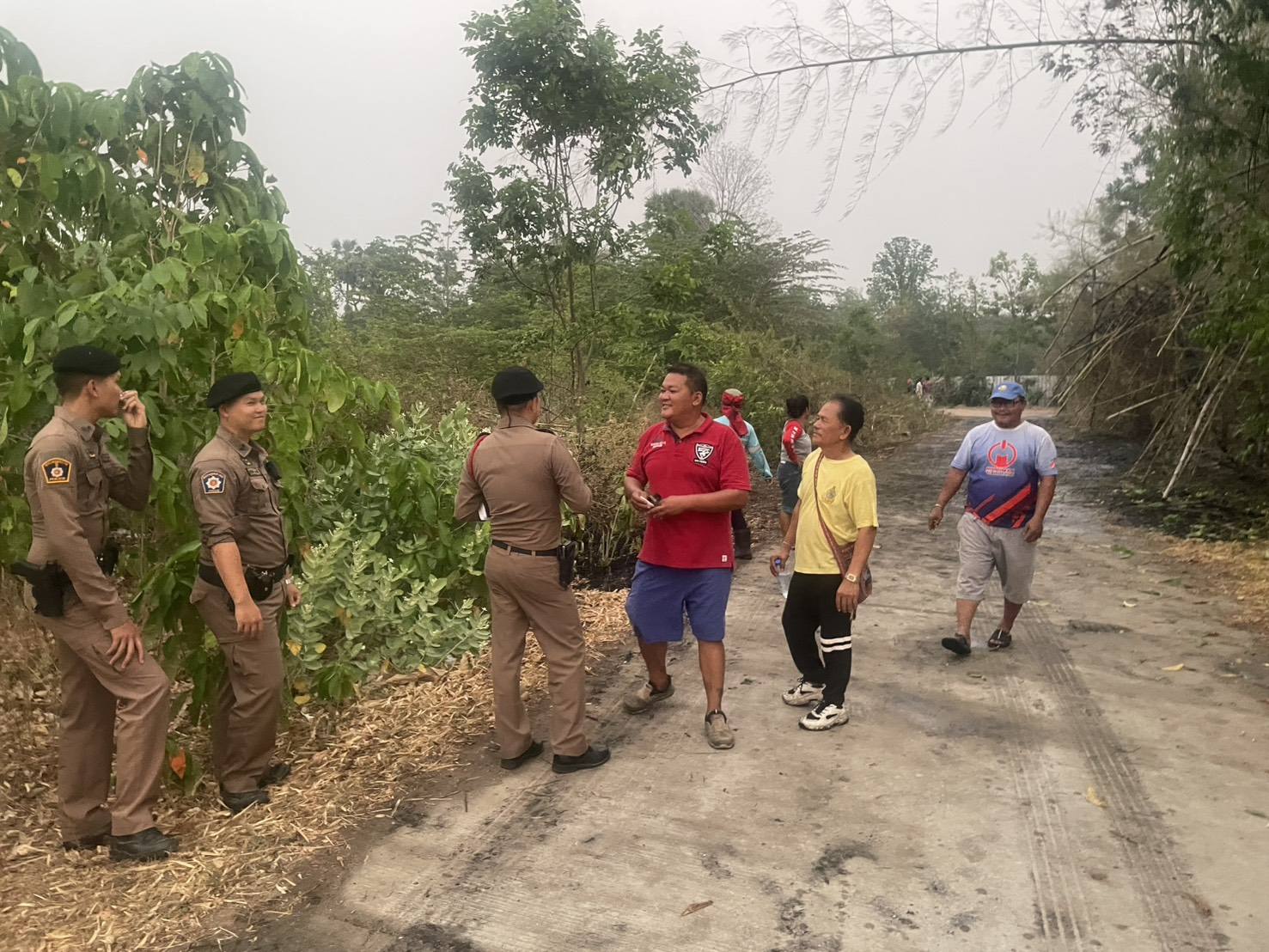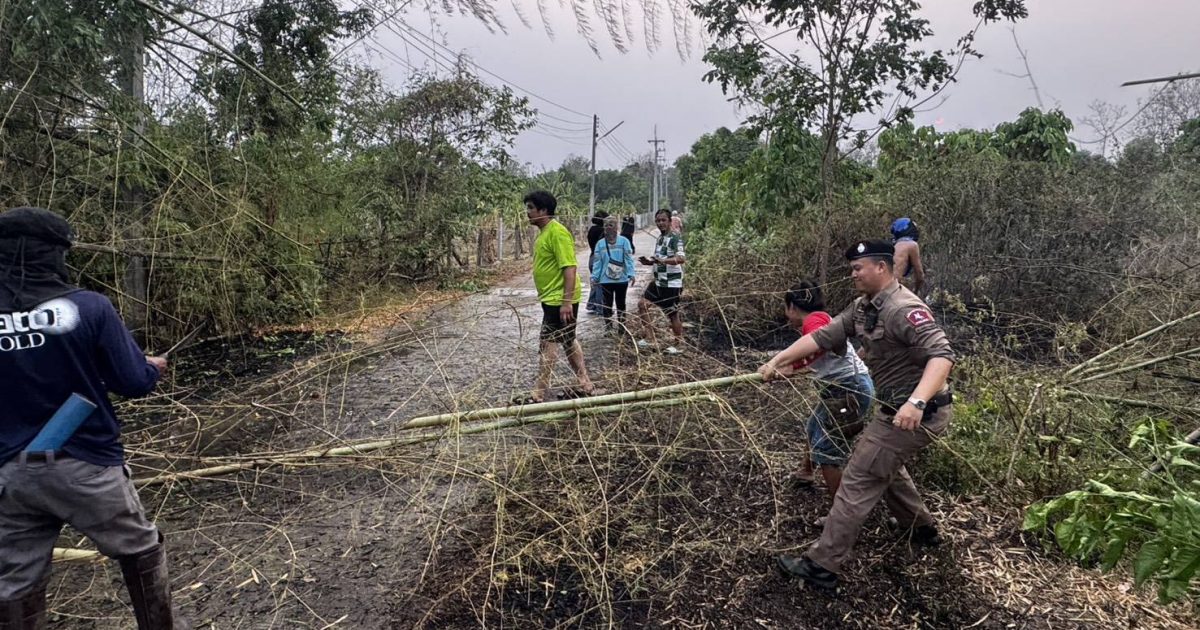 การดำเนินการ : สายตรวจรถยนต์ว.4 ตรวจสอบ พร้อมด้วยผู้ใหญ่ หมู่ 5 เบื้องต้นมีสายไฟขาดไหม้บริเวณก่อไผ่ ไม่มีสิ่งของประชาชนเสียหาย ได้ประสานรถน้ำ อบต. ป่าม่วงและการไฟฟ้ามาตรวจสอบต่อไป