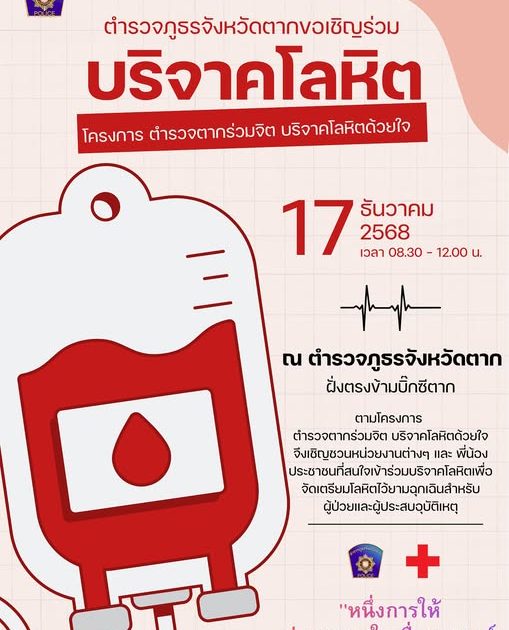”ตำรวจภูธรจังหวัดตาก ตามโครงการ ตำรวจตากร่วมจิตบริจาคโลหิตด้วยใจ” ณ ตำรวจภูธรจังหวัดตาก
