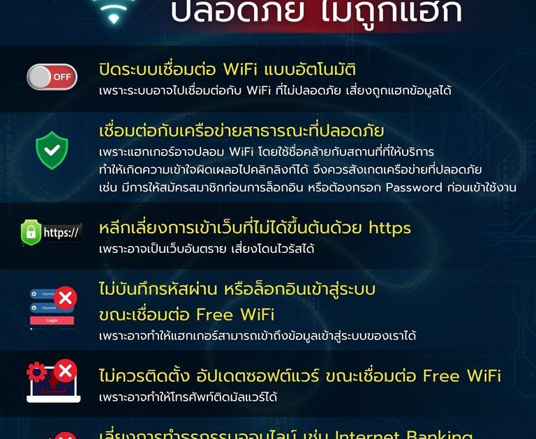 ปัจจุบัน WiFi ฟรี หรือ WiFi สาธารณะ มีให้บริการทั่วไป แต่มิจฉาชีพอาจใช้เป็นช่องทาง แฮก ปล่อยมัลแวร์ ดูดข้อมูล ขโมยพาสเวิร์ด