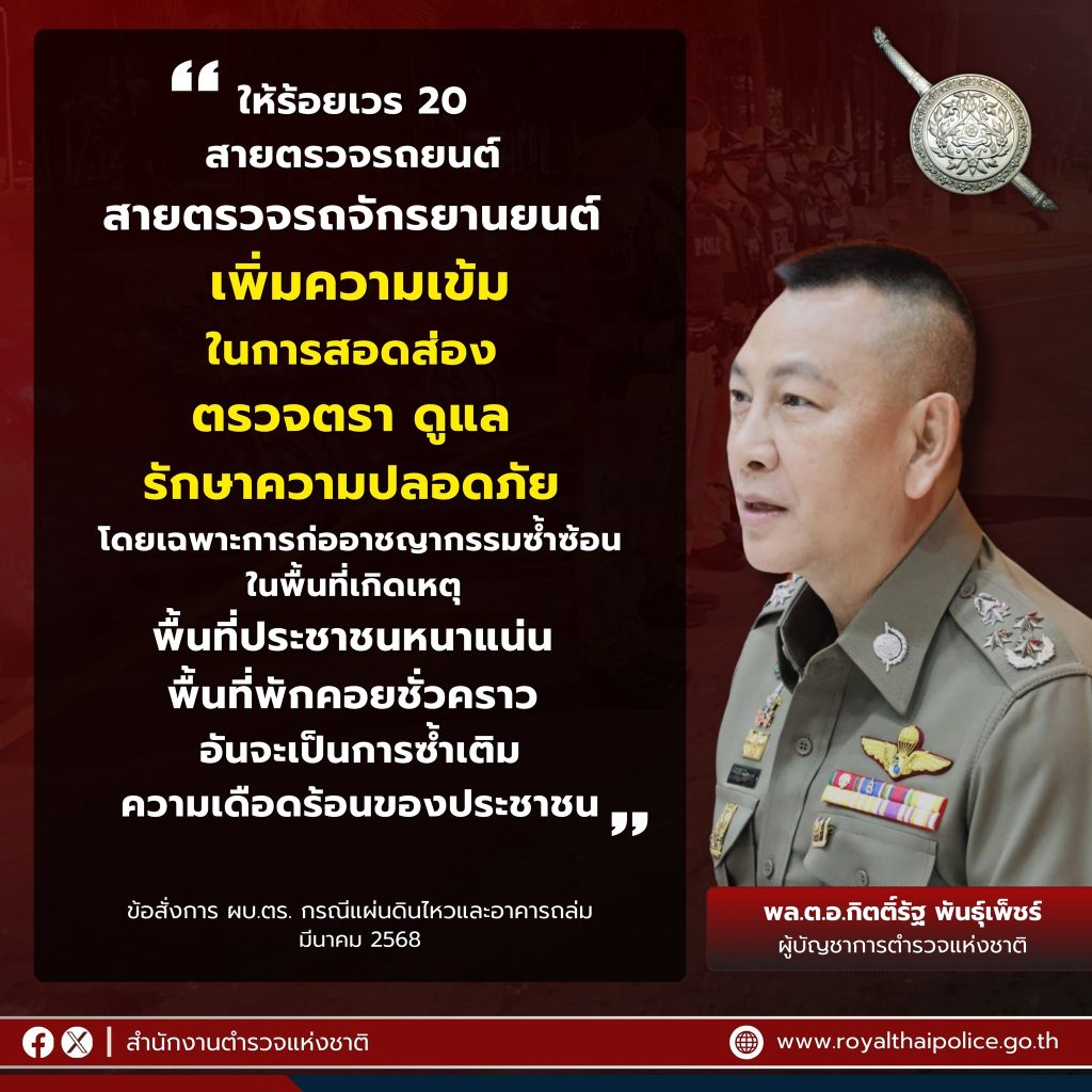 ออกตรวจยามวิกาล ป้องกันการแข่งรถในทาง 3 เมษายน 2568 โดย admin / ข่าวประชาสัมพันธ์,ข่าวกิจกรรม Post Views: 11 วันนี้ (31 มี.ค. 2568) เวลาประมาณ 22.19 น.ตามนโยบายผู้บังคับบัญชาภายใต้การอำนวยการของพ.ต.ท.สุรพงษ์ รัตนาวงศ์ สว.สภ.หนองบัวเหนือ ได้มอบหมายให้ร.ต.อ.สิทธิชัย ทำอินแก้ว รอง สวป. สภ.หนองบัวเหนือ ร้อยเวร 20 พร้อมด้วยสายตรวจรถยนต์ ชป.1 ว.4 ออกตรวจป้องกันการแข่งรถบนท้องถนนสาธารณะ บริเวณถนนสาธารณะ ม.7 ต.ป่ามะม่วง อ.เมืองตาก จ.ตากเหตุการณ์ทั่วไปปกติ FacebookFacebookXTwitterLINELine