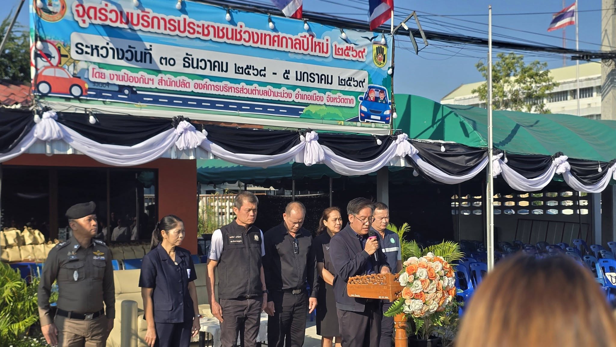 เมื่อวันที่ 30 ธันวาคม 2568 เวลาประมาณ 09.00 น. นำโดย พ.ต.ท.สุรพงษ์ รัตนาวงศ์ สว.สภ.หนองบัวเหนือ, ร.ต.ท.ชยุต สุยะผัน รอง สว(ป.) สภ.หนองบัวเหนือ ร้อยเวร 20 พร้อมสายตรวจรถยนต์ ร่วมกับฝ่ายปกครอง, รพ.สต.ชะลาด, ปลัด อบต.ป่ามะม่วง และเครือข่ายภาคประชาชน เข้าร่วมกิจกรรมเปิดพิธีตั้งจุดบริการประชาชนบริเวณตู้ อปพร. ประจำปี 2568 เนื่องในเทศกาลปีใหม่ 2569 เพื่อรณรงค์ให้ผู้ขับ สวมหมวกนิรภัย 100% เพื่อลดอัตราการเสียชีวิตในเทศกาลปีใหม่ 25689