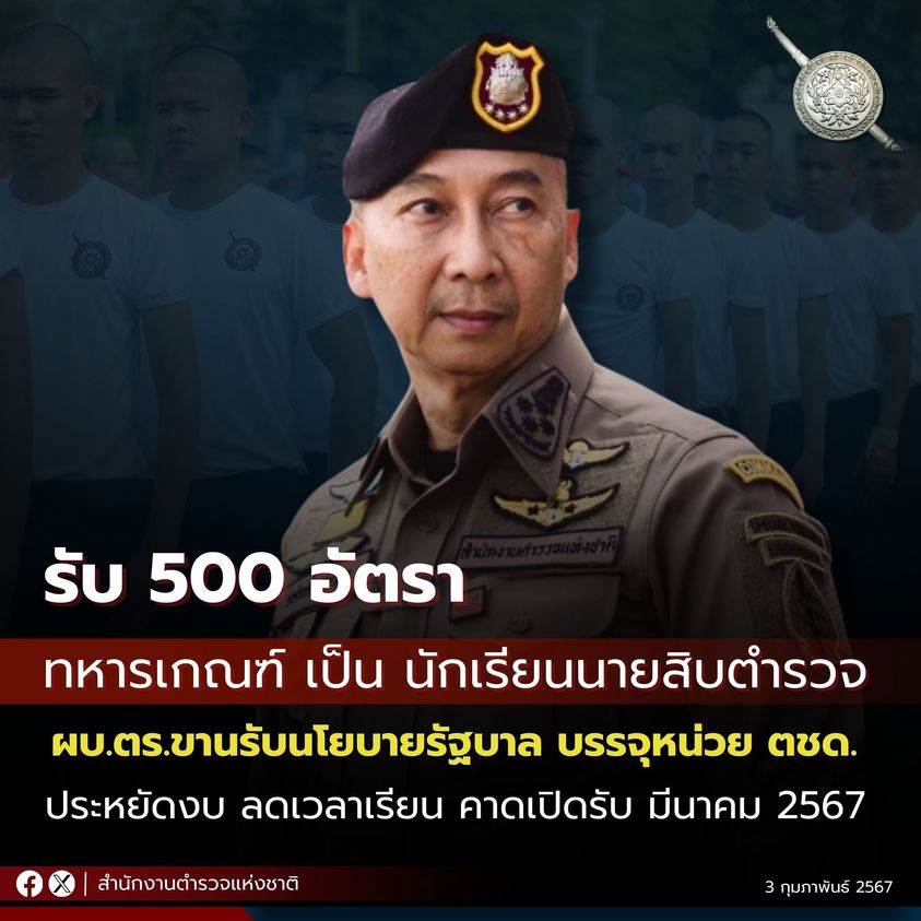 ข่าวดี!! ผบ.ตร.ขานรับนโยบายรัฐบาล เปิดรับทหารกองหนุน สอบเป็นนักเรียนนายสิบตำรวจ 500 อัตรา จบมาลงหน่ว