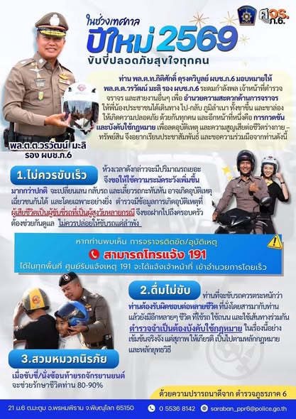“ดื่มไม่ขับ คนข้างหลังเป็นห่วง”เทศกาลปีใหม่ 2569 ขับขี่ปลอดภัย ลดความเร็ว ลดอุบัติเหตุด้