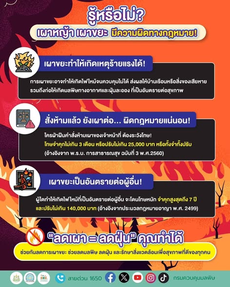รู้หรือไม่? การเผาหญ้า เผาขยะ มีโทษทางกฎหมาย!