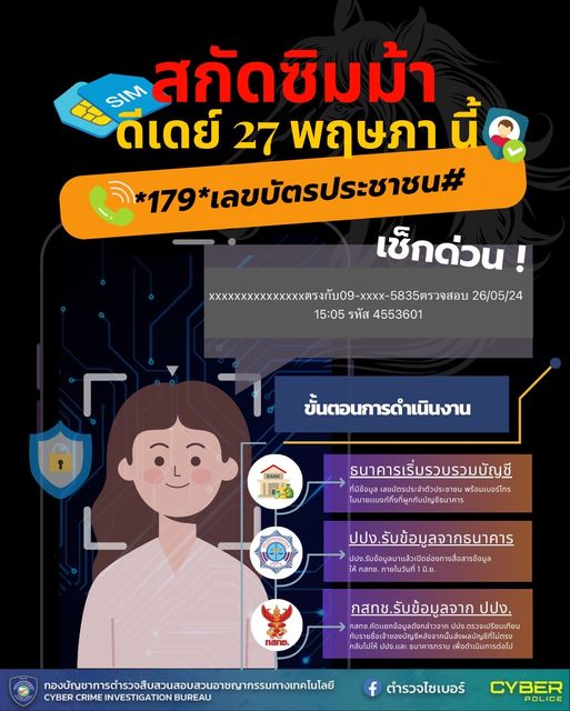 ดีเดย์ 27 พฤษภาคมนี้ กับมาตรการสกัดซิมม้าจาก กสทช.รีบเช็กเลย *179*เลขบัตรประชาชน# โทรออกหากชื่อซิมไม