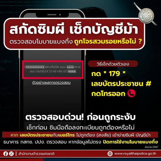เช็กกันหรือยัง มาตรการสกัดซิมผี แก้บัญชีม้ารีบเช็กเลย *179*เลขบัตรประชาชน# โทรออก ซิมลงทะเบียนถูกต้อ