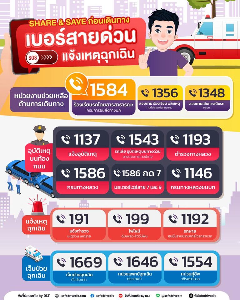 รวม #เบอร์สายด่วน แจ้งเหตุฉุกเฉิน กด SAVE เก็บไว้อุ่นใจตลอดการเดินทาง เกิดเหตุเมื่อใด พร้อมช่วยเหลือ