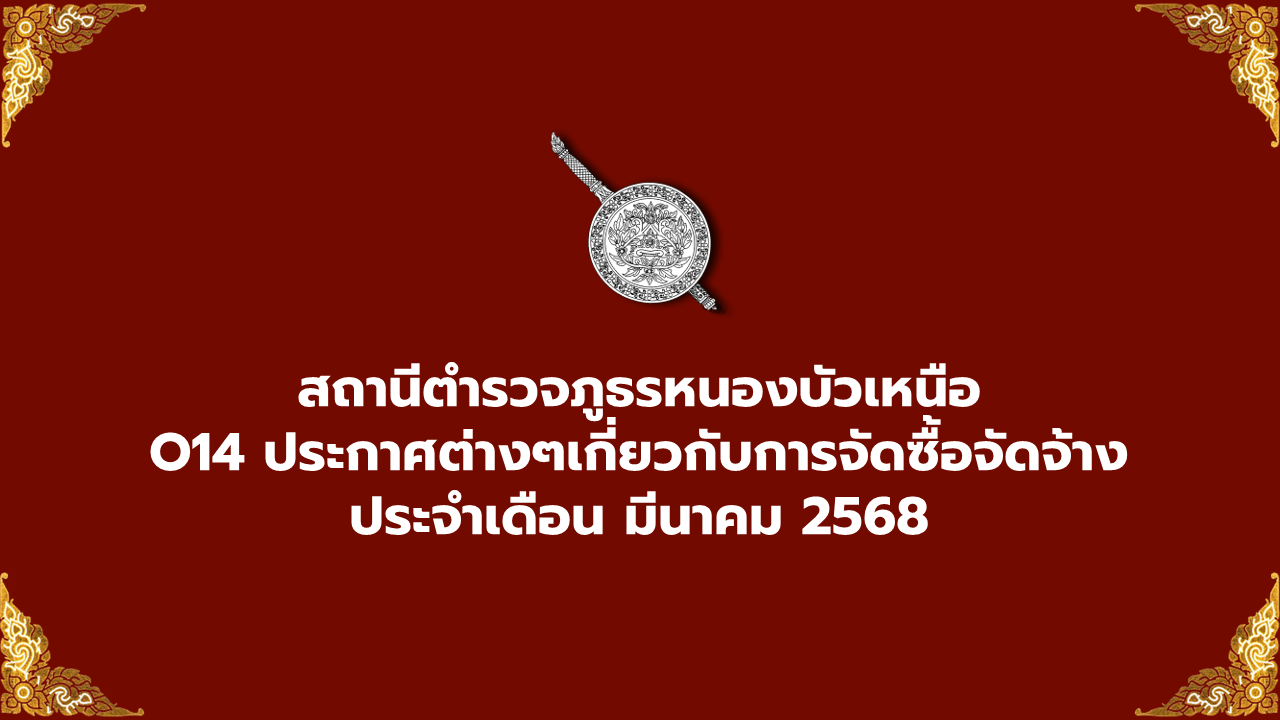 O14 ประกาศต่างๆ เกี่ยวกับการจัดซื้อจัดจ้าง ของสถานีตำรวจภูธรหนองบัวเหนือ ( ประจำเดือน มีนาคม 2568 )